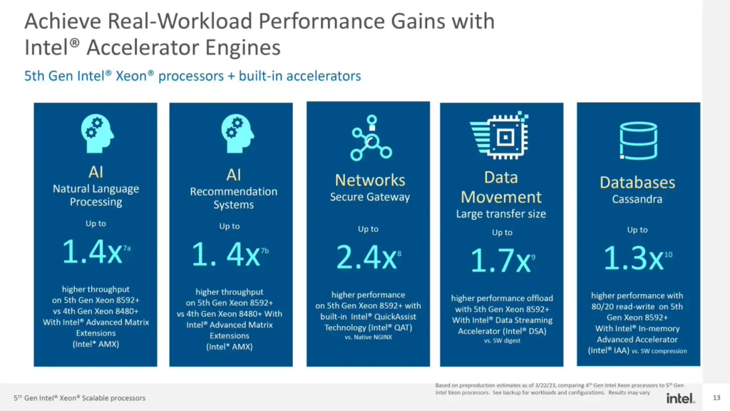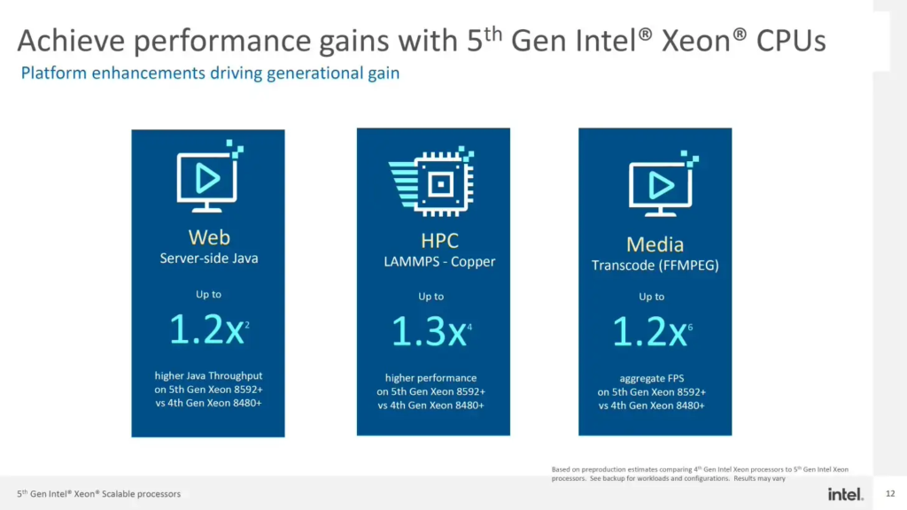 为了在第四代至强和第五代至强产品之间取得明显差异,英特尔比较了这两个系列的旗舰产品。