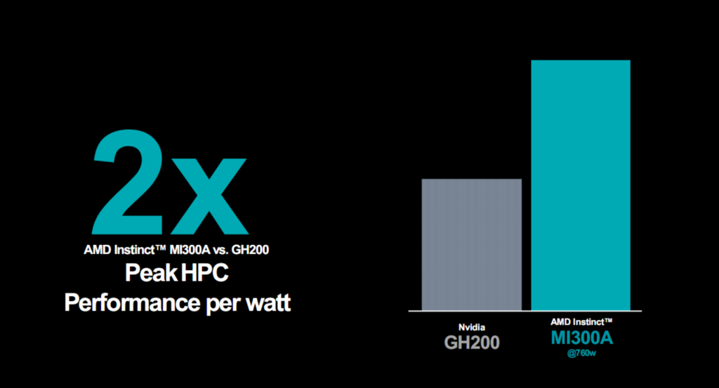 对比最新的GH200,MI300A 760W峰值功耗下的能效优势,更可以达到2倍。