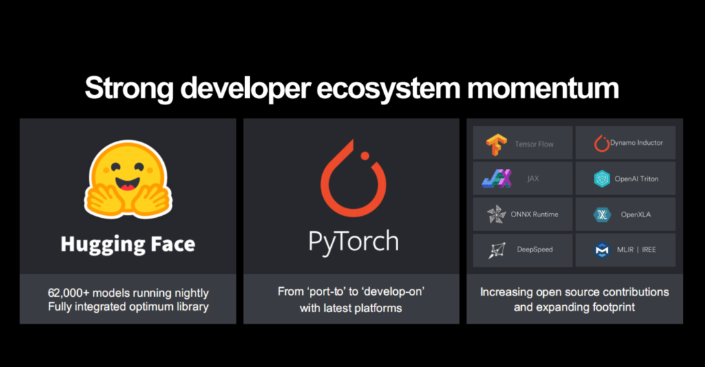它重点针对大语言模型额和生成式AI进行优化和提升,以及强化支持开放开源、拓展生态支持、加入更多AI库等等。