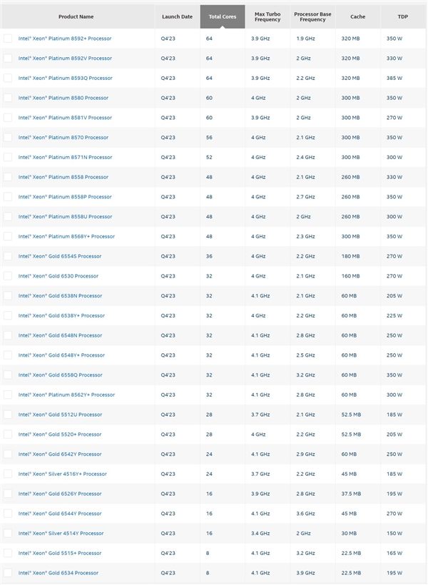 Intel正式发布五代至强:最多64核心/320MB三级缓存、省钱77%