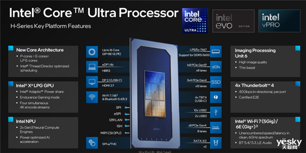 除此之外,英特尔酷睿处理器还具备以下特性——支持新一代英特尔硬件线程调度器;支持最高64GB的LP5/x或最高96GB DDR5内存;连接方面支持40Gbps的雷4,集成支持英特尔Wi-Fi 6E(Gig+)以及支持独立的英特尔Wi-Fi 7 6(5 Gig),还支持英特尔Bluetooth低功耗音频等。