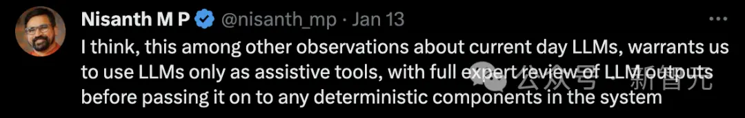 有人表示,这项研究以及其他观察表明,我们有理由只将 LLM 作为辅助工具,在将 LLM 输出传递给系统中的任何确定性组成部分之前,需要对 LLM 输出进行全面的专家审查。