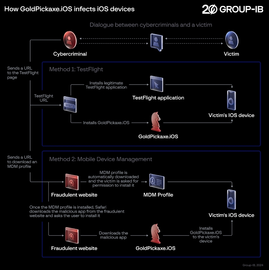 Group-IB是一家致力于调查、预防和打击数字犯罪的网络安全技术的公司,该公司最近发现了首个iOS木马病毒——GoldPickaxe.iOS,可窃取用户的面部识别数据、身份证件并拦截短信。GoldPickaxe.iOS的发现也标志着,不法分子已经研究出了针对苹果iOS操作系统的恶意软件的罕见实例。