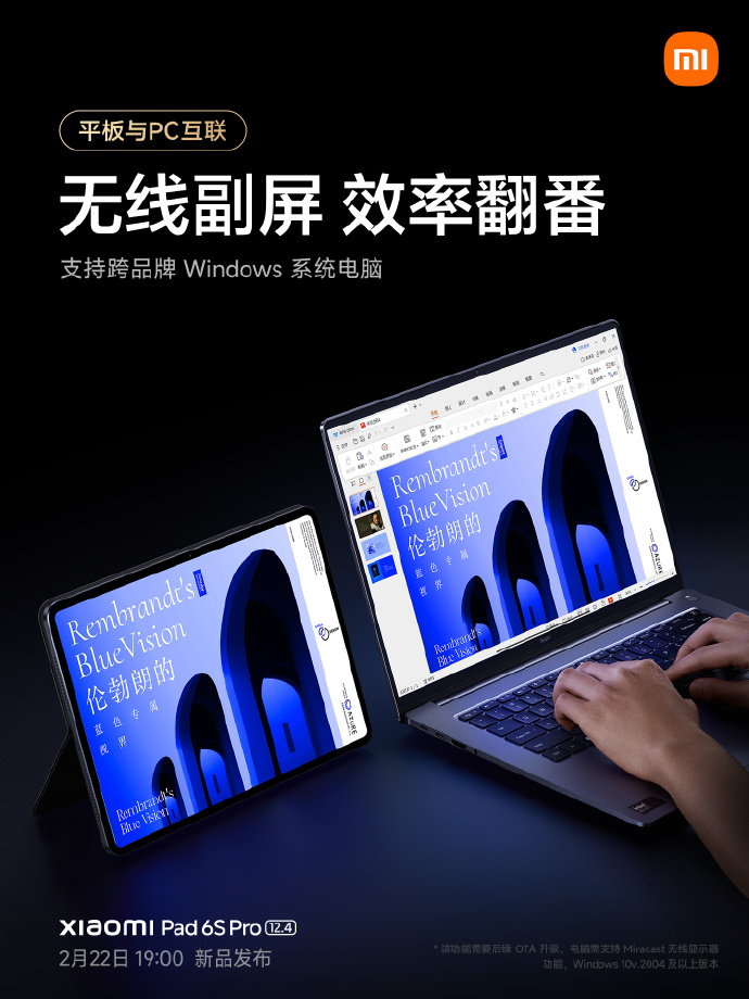 2 月 21 日消息,小米平板 6S Pro 将于 2 月 22 日晚发布,而根据“小米平板”官方微博预热信息,这款平板号称支持与手机、电脑互联互通,号称“办公能力大拓展”。