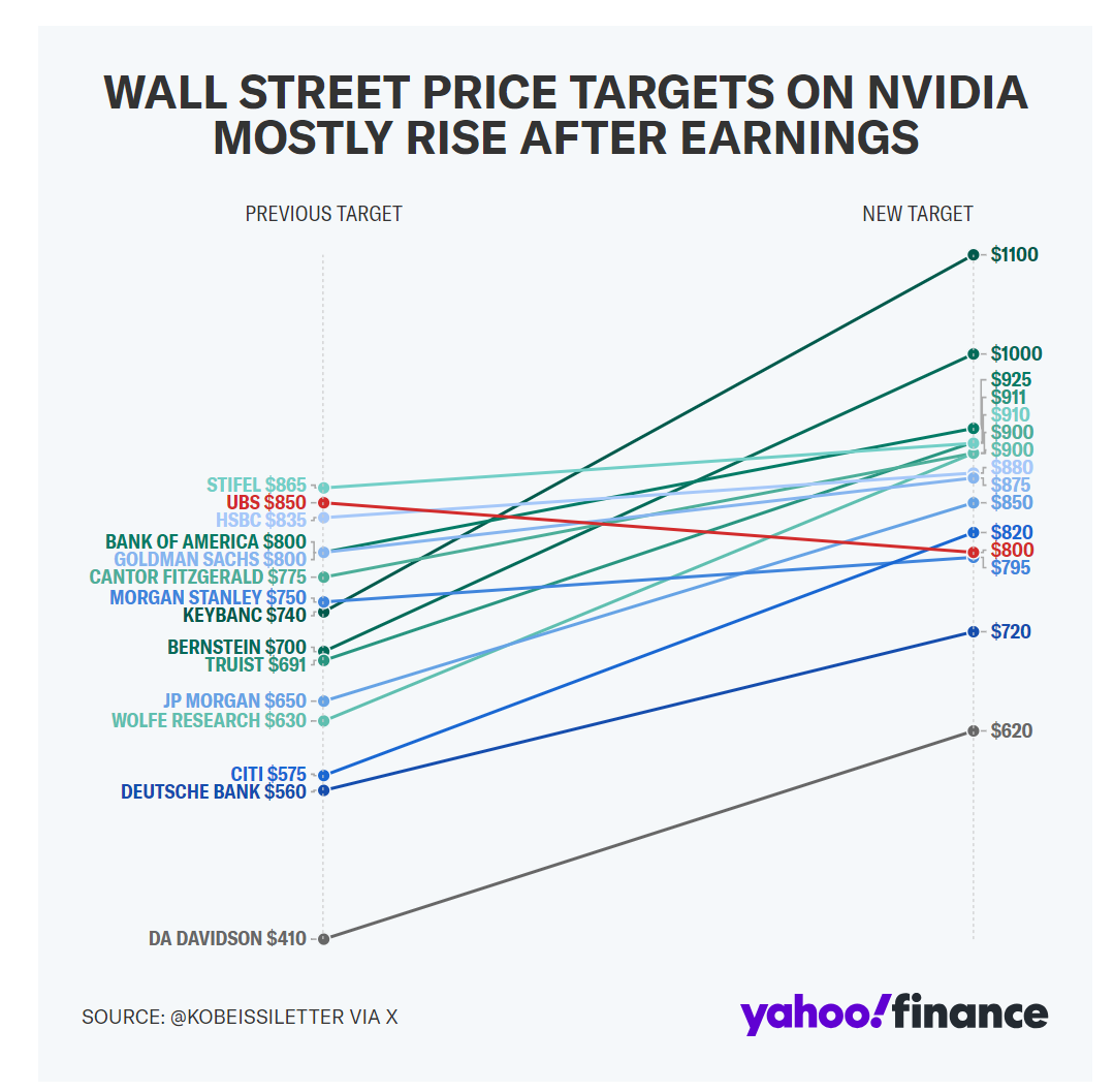 这份全方位表现出色的财报引爆了华尔街的乐观情绪,大行们纷纷上调了该股的目标价。截至周四美股收盘,英伟达涨16.4%,报785.38美元,今年迄今的涨幅已扩大至63.05%。