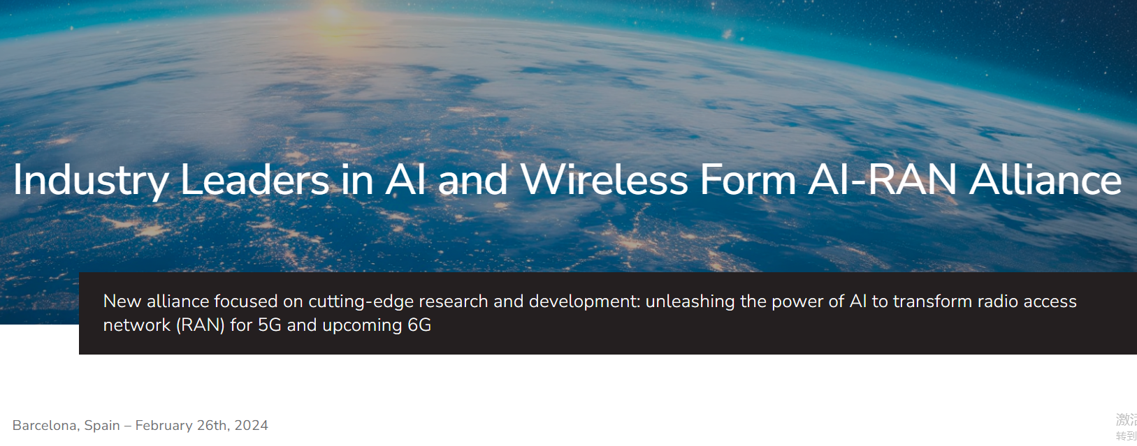 当地时间周一(2月26日),2024年世界移动通信大会(MWC 2024)在西班牙巴塞罗那拉开帷幕。当天在MWC上,英伟达主导的“AI-RAN联盟”宣布正式成立。据了解,AI-RAN指“人工智能(AI)-无线接入网(RAN)”,是一个旨在重振人工智能与无线通信融合、引领技术创新的行业协会组织,使命是提高移动网络效率、降低功耗并改造现有基础设施,为在5G和6G的推动下利用AI释放新的经济机会奠定基础。