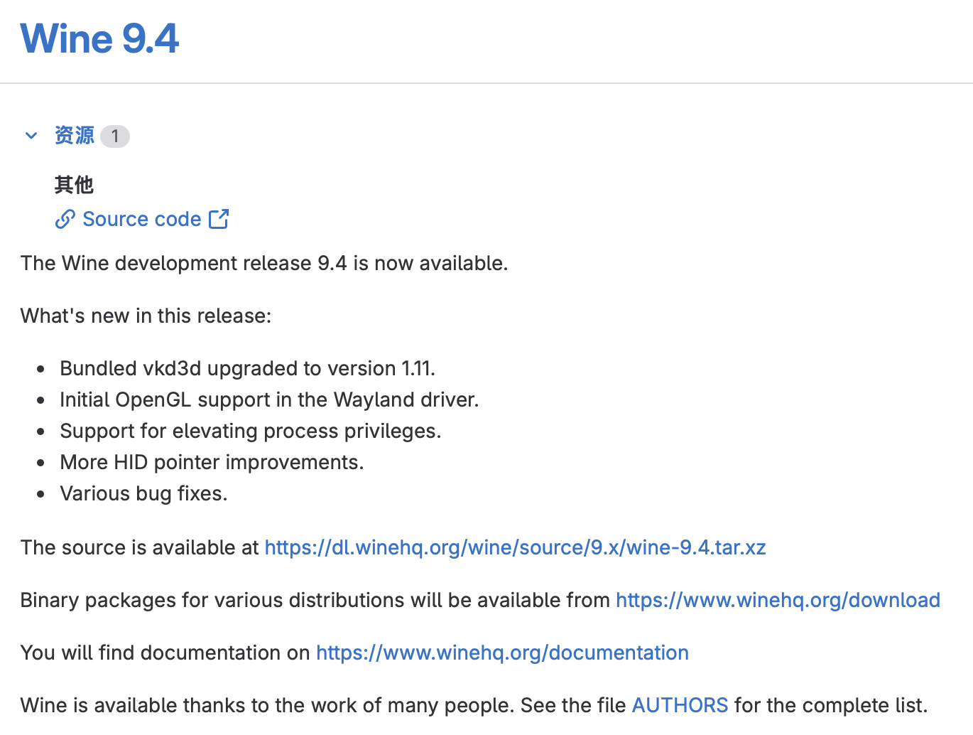 3 月 9 日消息,Wine 在迈入 9.x 版本之后,继续稳定以 2 周为更新频率发布新版本,目前 Wine 9.4 已经正式发布,该版本主要修复了 25 个已知错误,小伙伴可以点此访问更新日志及下载地址。