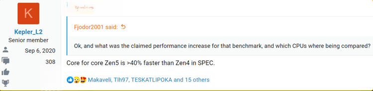 来自著名爆料博主的说法, 目前AMD已经完成了Zen 5处理器的设计,并且顺利生产出首批ES版本的工程样品,在处理器设计上,相比较目前的Zen 4处理器,Zen 5处理器可以说在设计上进行了天翻地覆的变化,差不多算是一代全新的产品,在工艺、架构以及频率上均有所提升。在具体的处理器性能上,Zen 5在SPEC基准测试中,能够取得比Zen 4架构高出50%的单核性能,这个提升幅度可以说达到了2代的水平,甚至相当于过去从推土机到Zen架构的进化幅度。当时AMD表示预计IPC提升幅度在40%,实际IPC提升幅度达到了52%。事实上与当时推土机完全被英特尔吊着打有所不同的是,现在的Zen 4架构处理器在单核性能上是和英特尔打得有来有回,并没有完全被碾压。
