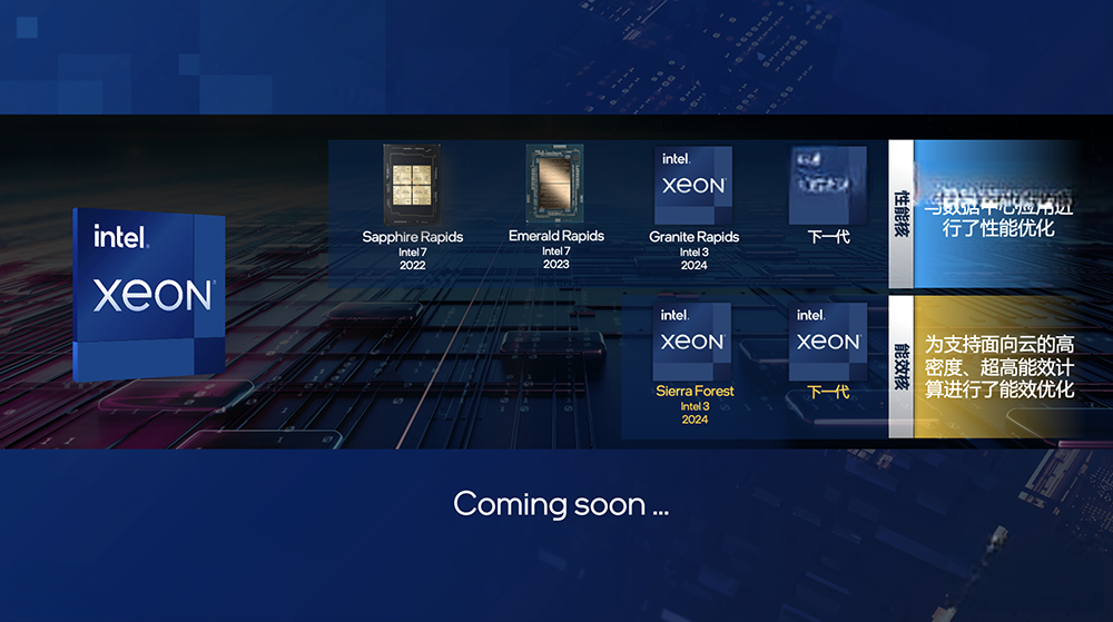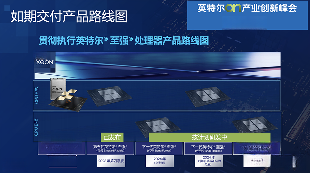 基于第五代至强,英特尔将发布下一代性能核,即高主频、高性能的CPU核架构,为主流和复杂的数据中心应用优化性能;同时针对新兴的,尤其是基于云原生的设计,提供追求相对极致每瓦性能的能效核,注重实现能效优化。