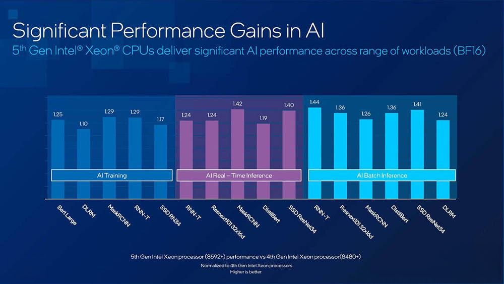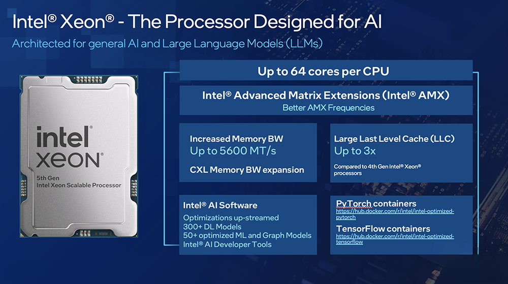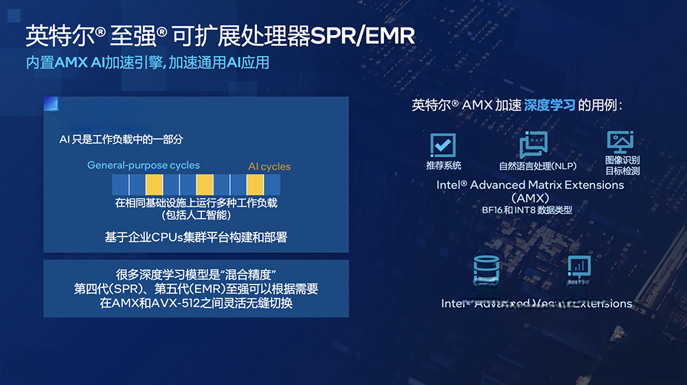 对于通用AI工作负载,第五代至强支持AMX和AVX-512指令集,基于OpenVINO进行优化。