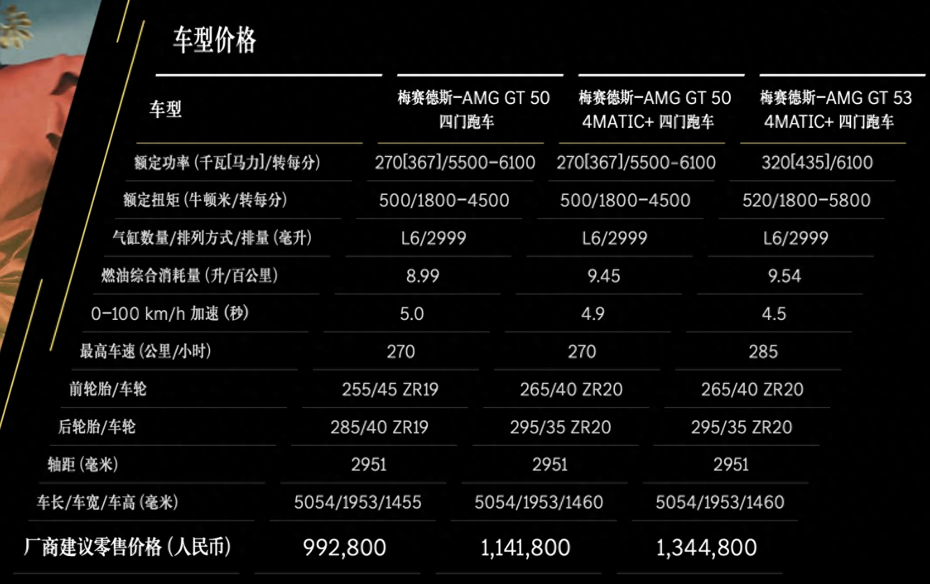 | 奔驰 AMG GT 53 4MATIC + 四门跑车 | 134.48 万元 |