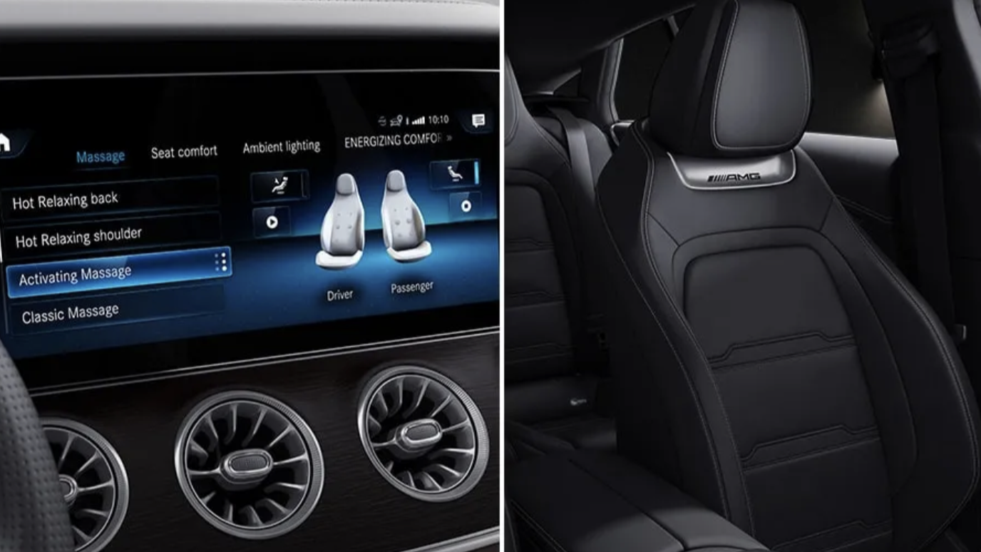 座舱方面,2024 款 AMG GT 53 4MATIC + 四门跑车搭载 12.3 英寸全液晶仪表和中控屏幕,增加后桥差速锁选装,方向盘加热选装,标配后排手机无线充电等配置。