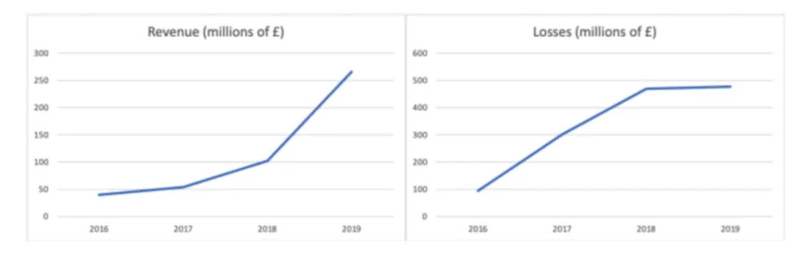 DeepMind从2016年到2019年的营收与亏损,图片来源:VentureBeat