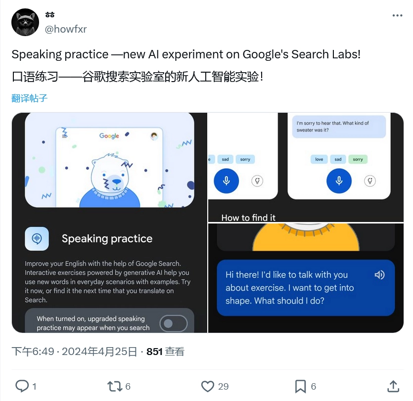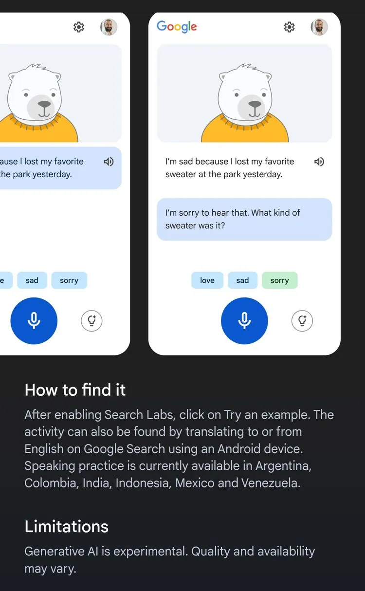 4 月 27 日消息,如何提高英语口语呢?或许很多人都没有条件和外国人面对面互动,谷歌近日测试的“Speaking practice”功能有望缓解这个问题,增强学习者的口语能力。