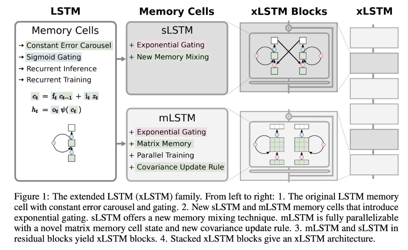 而最近 Sepp Hochreiter 在 arXiv 上发布论文,提出了一种名为 xLSTM(Extended LSTM)的新架构,号称可以解决 LSTM 长期以来“只能按照时序处理信息”的“最大痛点”,从而“迎战”目前广受欢迎的 Transformer 架构。