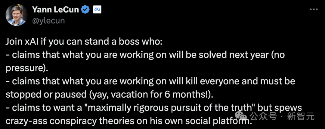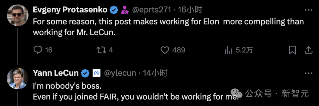 还有人表示,「你发的这帖子就是想说为马斯克工作,还不如为 LeCun 工作」。