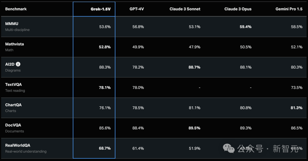 在性能测试上,Grok-1.5V 与 GPT-4V 不相上下,甚至有些能力还超越了 GPT-4V。