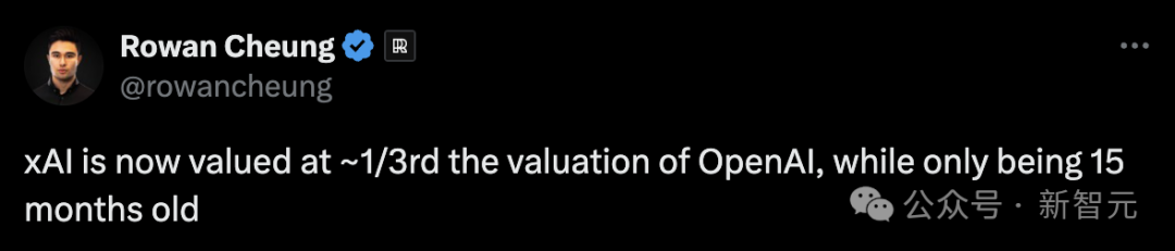仅 10 个月,马斯克 xAI 估值达 OpenAI 的 1/3
