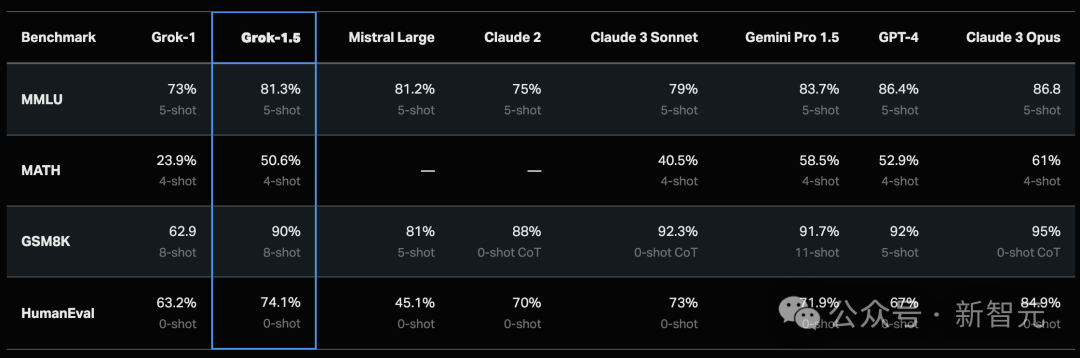 在不同的基准测试中,Grok-1 在数学、编程、MMLU 中取得了领先 GPT-3.5 的优势。