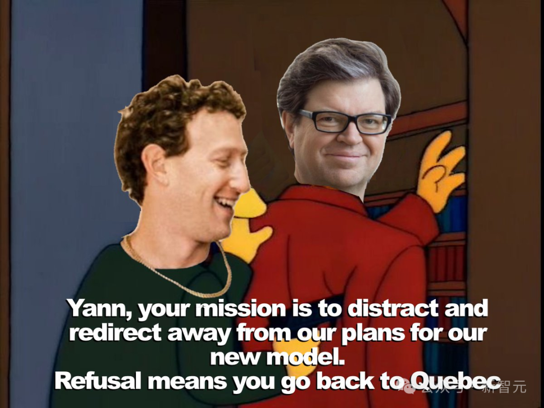 还有人恶搞了一张,小扎给 LeCun 派任务的表情包,这样做是为了分散所有人的注意力。