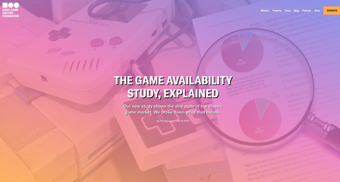在 2023 年,美国电子游戏历史基金会(VGHF)和软件保护网络血会(SPN)发布了一项研究。