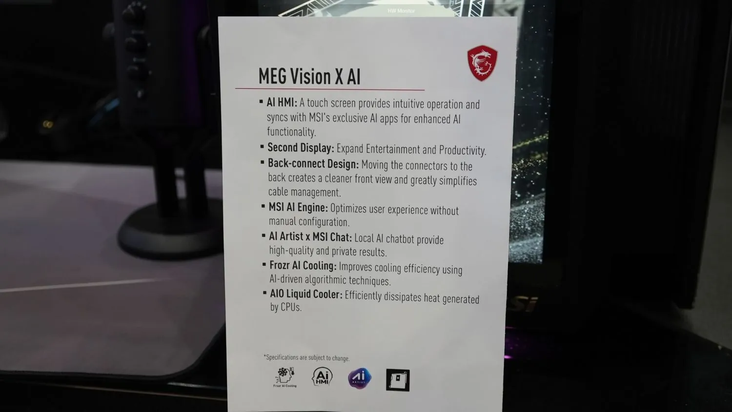 微星工作人员还透露该主机将会采用“下一代”组件,可能是指英伟达 GeForce RTX 5090 显卡。微星会在今年年底前公布 MEG Vision X AI 计划。