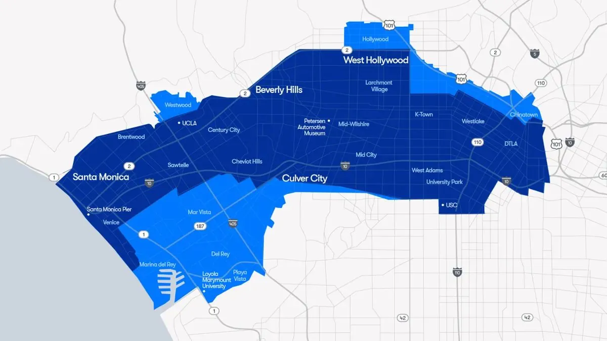 Waymo 公司正在扩张包括 Marina del Rey、Mar Vista 和 Playa Vista 在内的多个街区,并将好莱坞、唐人街和 Westwood 纳入其服务范围,不过该地区仍需要等待名单。