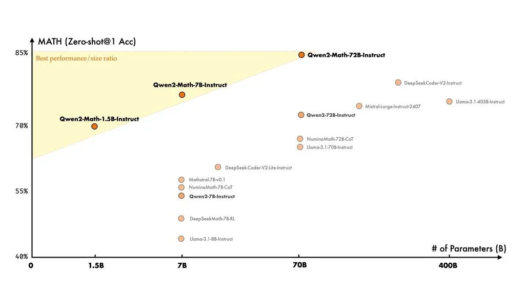 8 月 9 日消息,阿里通义千问 Qwen2 开源家族迎来新成员 Qwen2-Math,共有 15 亿参数、70 亿参数和 720 亿参数三个版本,是基于 Qwen2 LLM 构建、专门用于数学解题的语言模型。