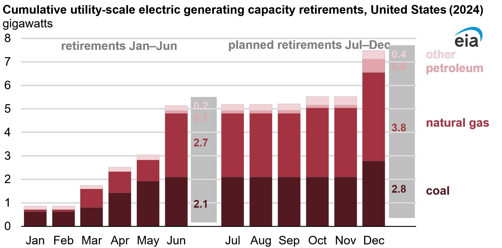 彭博社报道指出美国供电公司为了满足数据中心和人工智能发展需求,不断提高其发电能力。报道指出继今年上半年的新增发电量比 2023 年同期高出 21%,预计到今年年底将增加一倍多,达到 42.6 吉瓦。