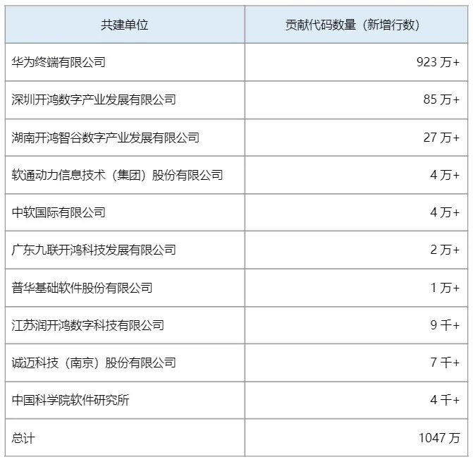 今年以来,共建单位已为 OpenHarmony 贡献共计 1047 万行代码,覆盖 27 个子系统中的 72 个需求。