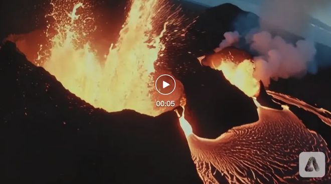 提示:慢动作拍摄炽热的火山景观,熔岩从火山口喷涌而出。摄像机飞过熔岩,熔岩溅到镜头上。灯光具有电影感。色彩等级也具有电影感、戏剧性和高对比度。