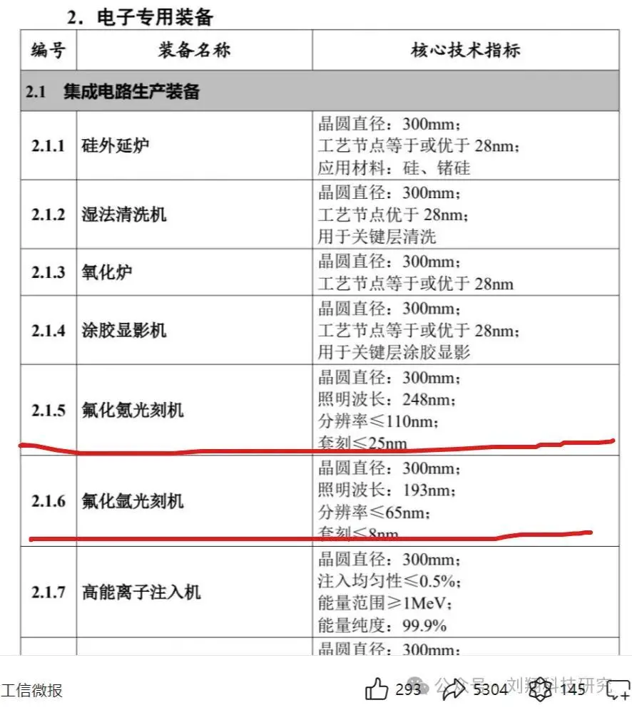 后来昨晚微信上有几个微信好友不约而同地给我发来一张表格,并问我如何看待国产光刻机?