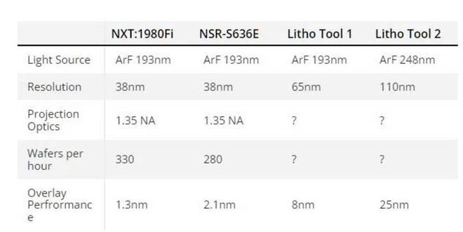 曾几何时,我们在光刻机领域,始终将ASML作为主要的追赶对象,包括此次目录中引发争议的套刻指标≤8nm的氟化氩光刻机,业内也都是将其与ASML类似的机型作为对比(目的是为了推断出咱们这款光刻机的实际水平),例如我们之前提及的ASML于2015年二季度出货的TWINSCAN XT 1460K,也有的将其与ASML的TWINSCAN NXT 1980Fi对比,例如知名的《南华早报》。