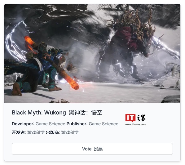 《黑神话:悟空》游戏入选“最佳视觉设计”。