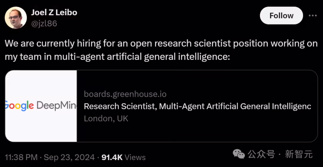 无独有偶,9 月 23 日,谷歌也发布了有关多智能体的招聘信息。