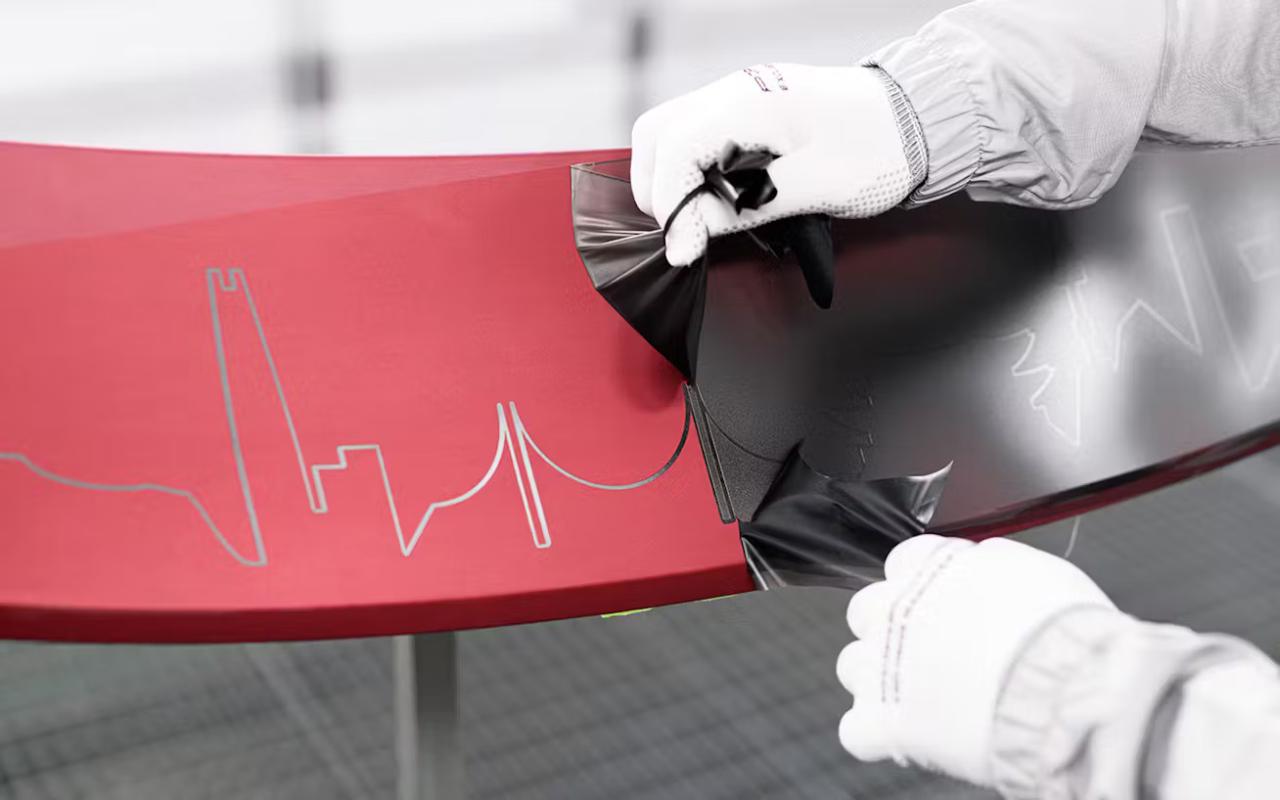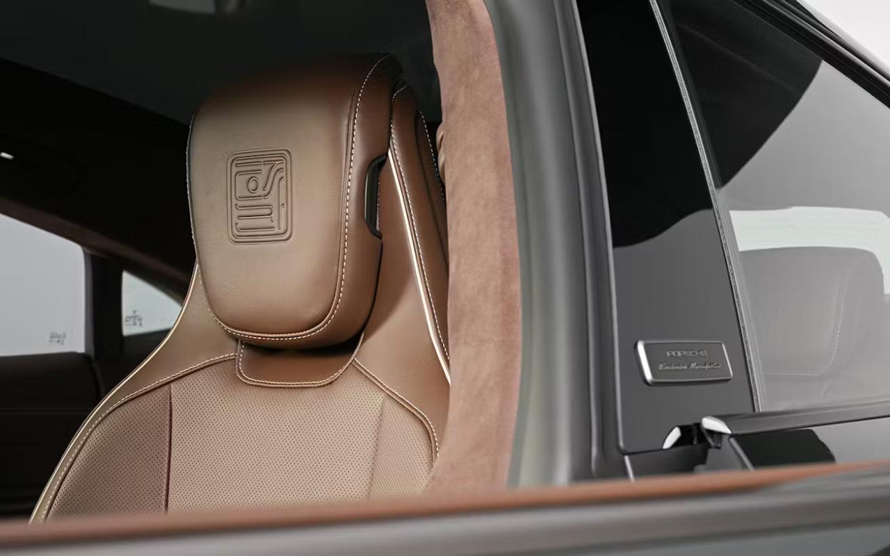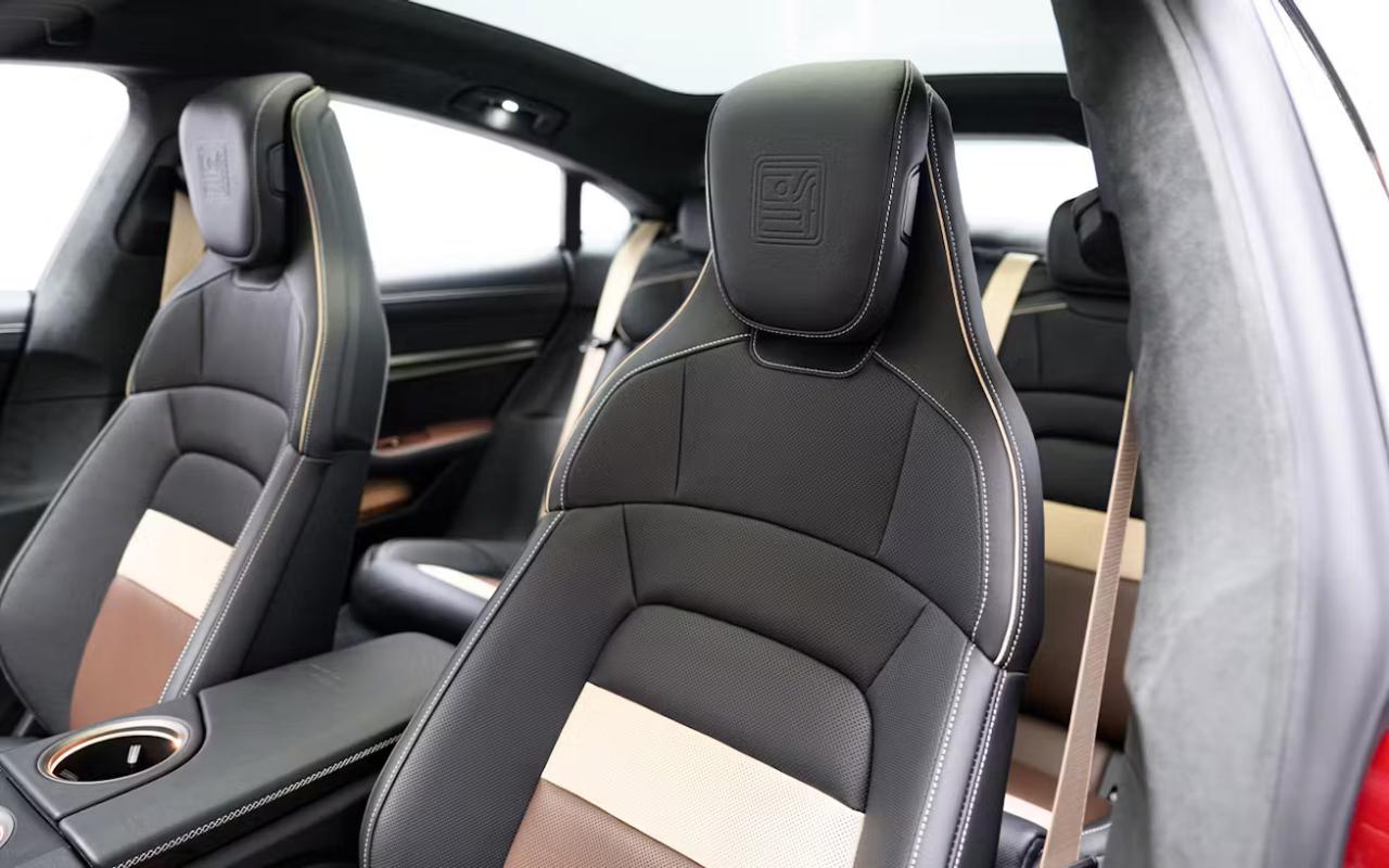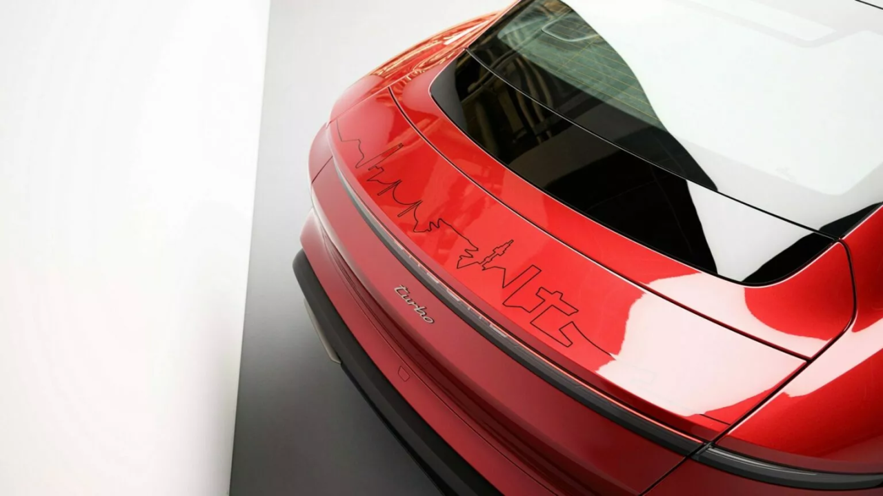 该车的观亮点在于尾翼上的图案,设计灵感来源于韩国城市的天际线。此外,还有一个基于韩国历史皇家印章形状的专属标志,其中含有韩文的“Taycan”字样。这一标志被手工绘制在驾驶侧充电口上,同时也被压印在座椅的头枕上。车辆配备了独特的 21 英寸 Mission-E 风格轮圈,轮圈采用涡轮型黑色磨砂饰面。