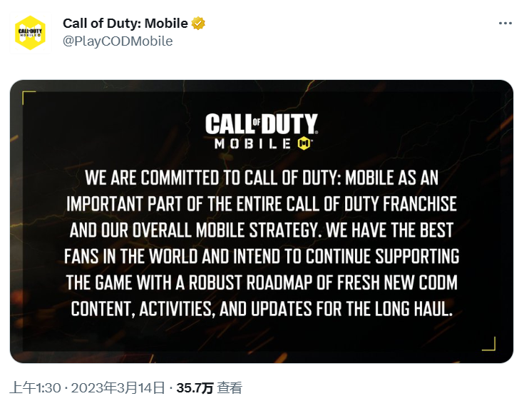 《使命召唤:移动版》于 2019 年末在全球范围内上线,并在 2021 年下半年登陆国服(即腾讯代理《使命召唤手游》,而在今年 3 月,系列游戏新作《使命召唤:战区 / 战争地带手游》发售。