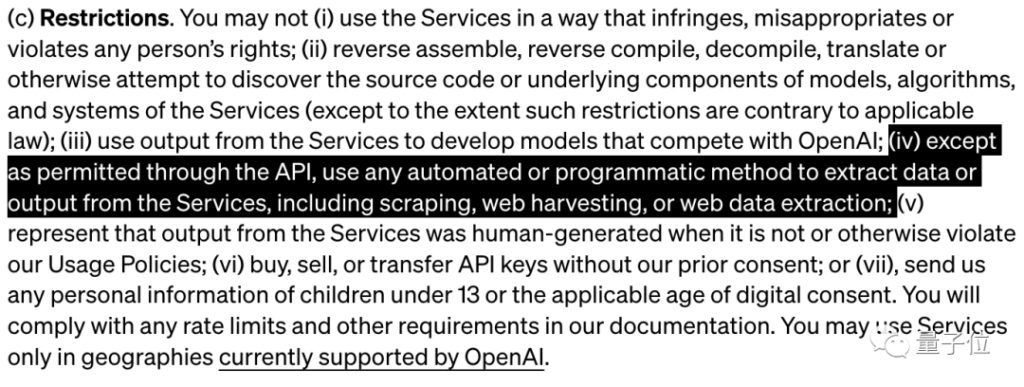 除非 API 允许,否则不得使用任何自动化或编程的方法从服务中提取数据并输出,包括抓取、网络收集或网络数据提取。