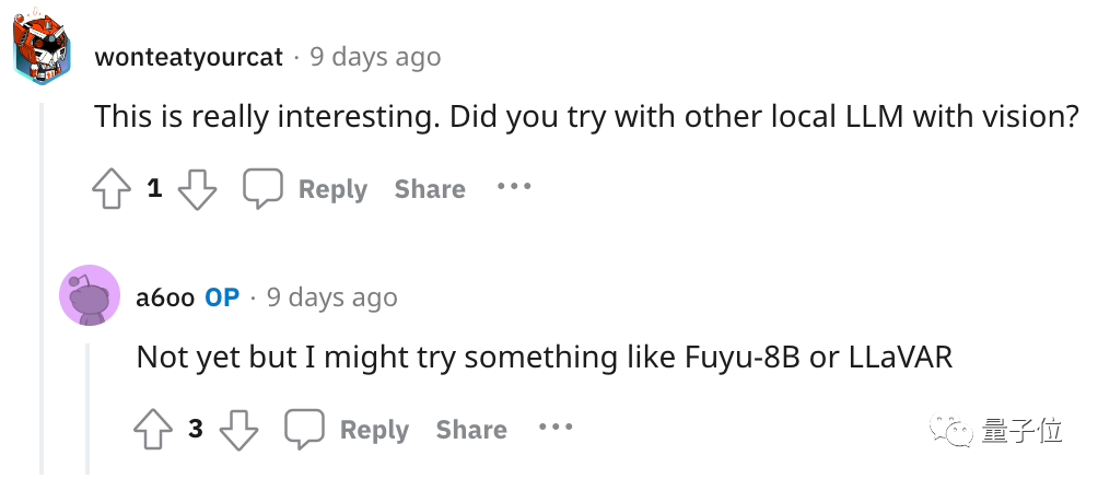 作者也表示,目前还没有,但确实可能会尝试 Fuyu-8B 或者 LLaVAR 这样的开源模型。