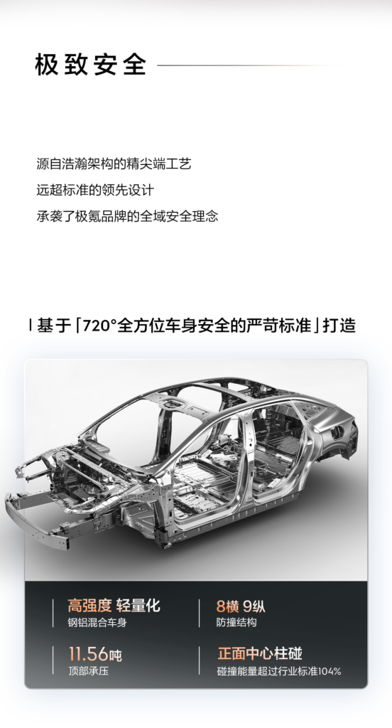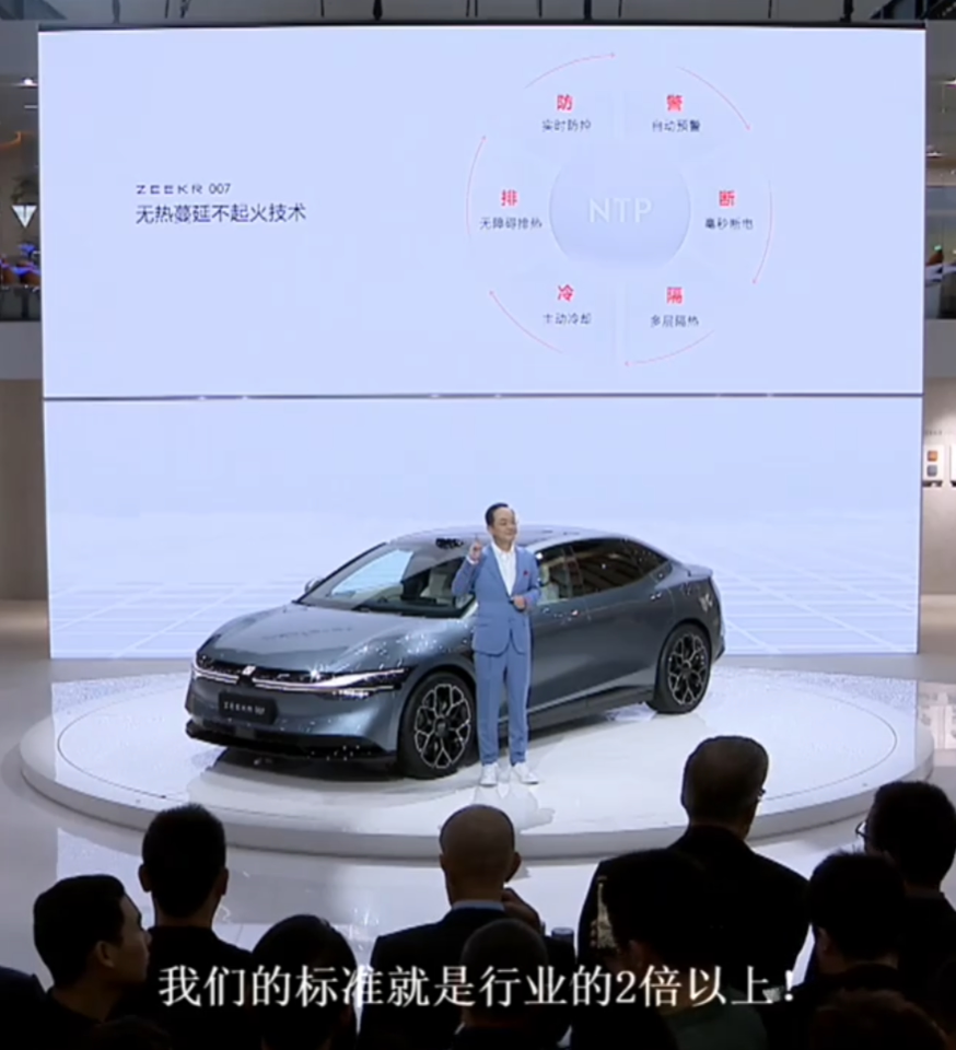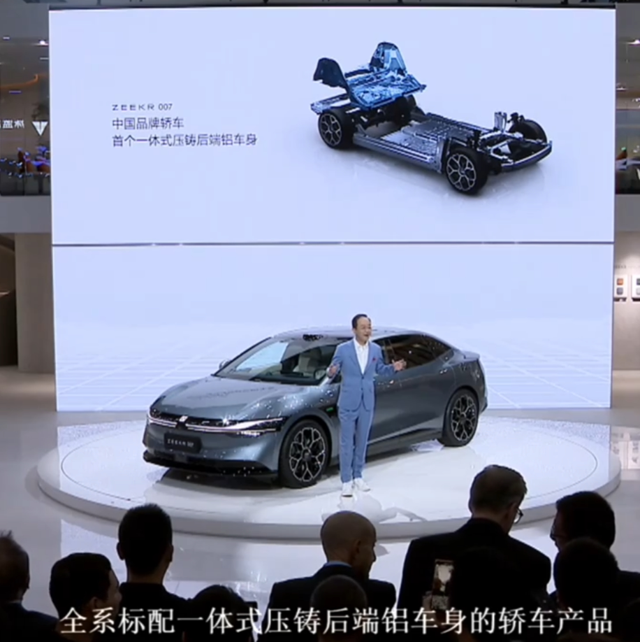 此外,极氪 007 号称是中国品牌轿车首个一体式压铸后端铝车身的车型,安全号称“无热蔓延不起火”。