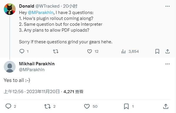 微软 Bing 业务现任 CEO、前 Yandex 首席技术官 Mikhail Parakhin 在回复网友提问时表示,插件功能、代码解释器和 PDF 上传等功能进展顺利,这些新功能可能很快就会在 Copilot 上出现。