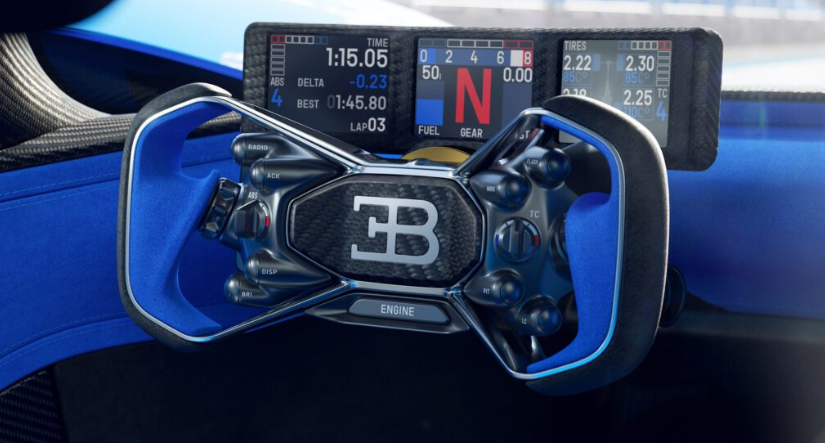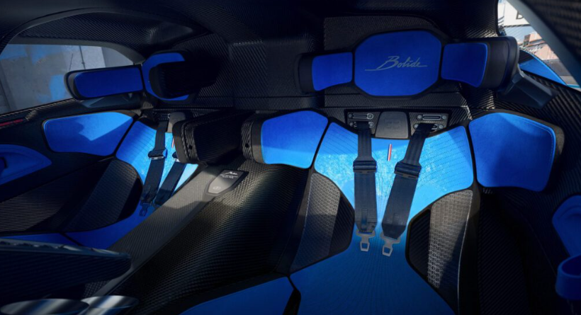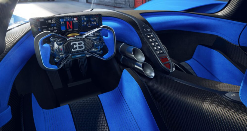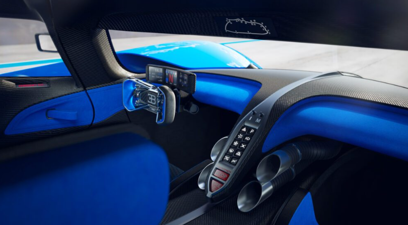 从图中可以看到,Bolide的内饰依旧采用了布加迪经典的T字形布局,车内布局十分简单粗暴,车内大面积采用碳纤维进行包裹,大灯、双闪、空调等功能都被塞进了中控之中。