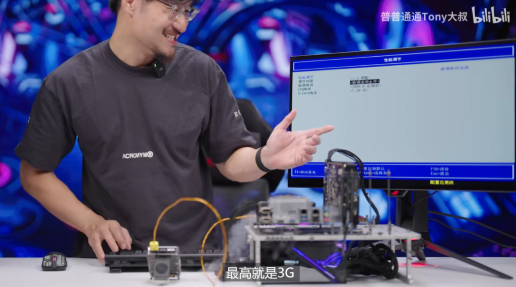 他提前上手测试、超频了 3A6000 这枚处理器。在零下 40 度到零下 85 度的环境中,3A6000 从 2.5GHz 超到 3GHz 那是完全没有什么问题。