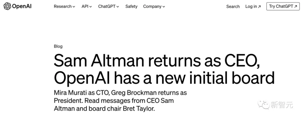 ChatGPT 一周年之际,OpenAI 发文官宣:Sam Altman 重启 OpenAI!