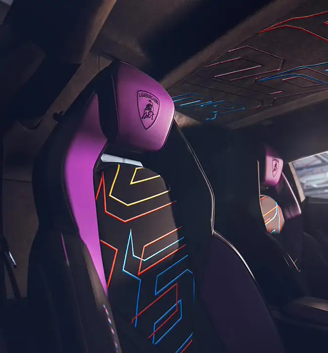 据介绍,Revuelto Opera Unica 采用了手工绘制的紫色系涂装,官方表示这套涂装历时约 435 小时打造而成。整车在以紫色作为底色的同时,车身配有“冰火两重天”的橙色、蓝色双色拉花,车头还有一个长着“牛角”的数字 60 特别版 LOGO。