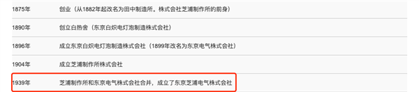 实际上,如今的东芝是在 1939 年时,才由东京电器和芝浦制作所两个公司合并而成的。