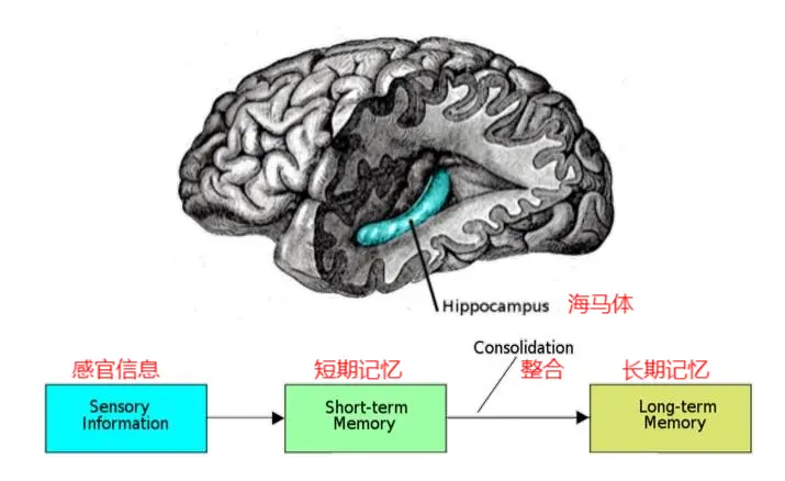 另外,大脑生成的长期记忆为解决复杂问题提供了基础。长期记忆实际上存在于大脑皮层。在大脑皮层,记忆意味着改变脑细胞之间的链接,构建新的链路,形成新的网络模式。海马体负责将短期以及转化为长期记忆,如果海马体受损,人就会变得“很健忘”。