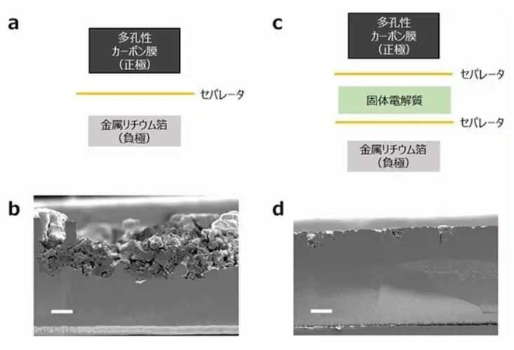 据介绍,研究人员通过在正极和负极之间插入用固体电解质制成的薄片,保护负极使用的锂,从而将电池寿命延长到了两倍。团队将进一步推进延长寿命,力争作为无人机等的电源实现实用化。