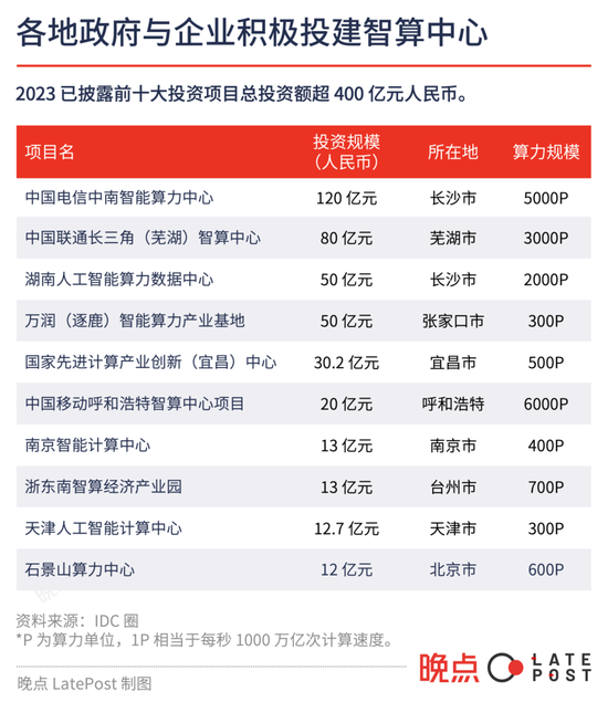 全国各地投建智算中心,已披露前十大项目总投资额超 400 亿元