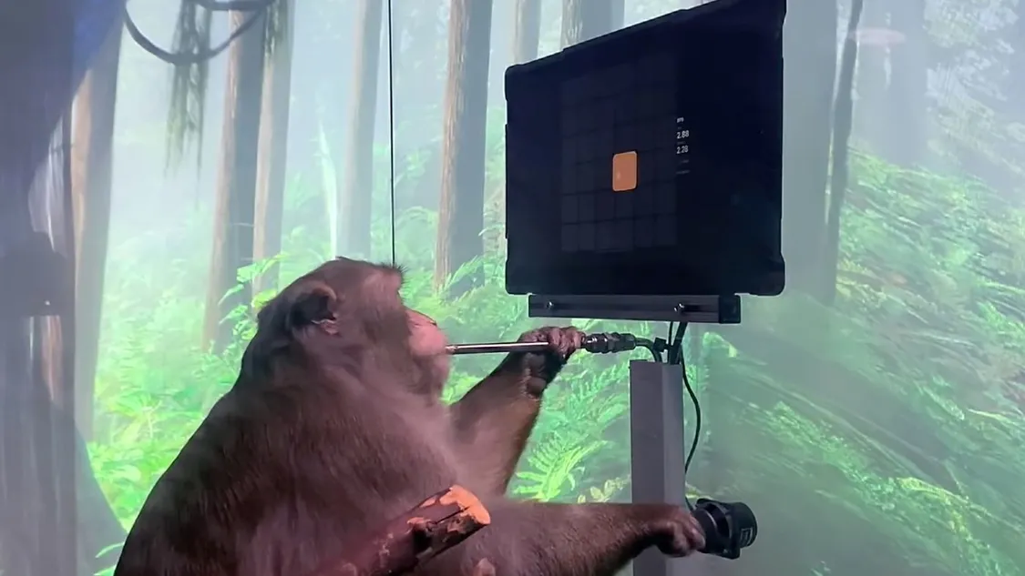 植入脑芯片的猴子在玩游戏
